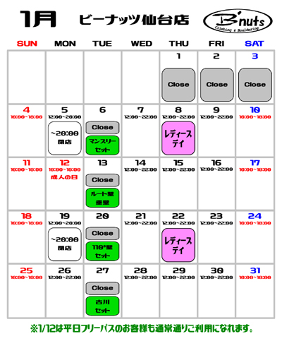 1月カレンダー