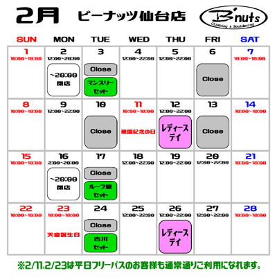 2月カレンダー