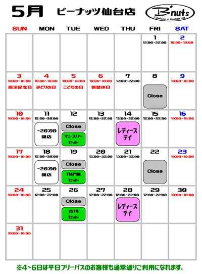 5月カレンダー
