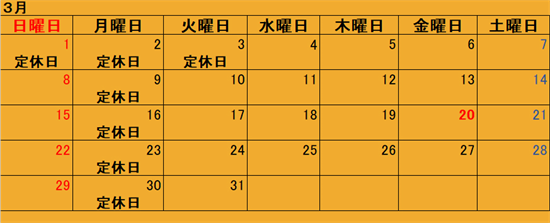 営業時間 10:00開店 19:00閉店 定休日 月曜日