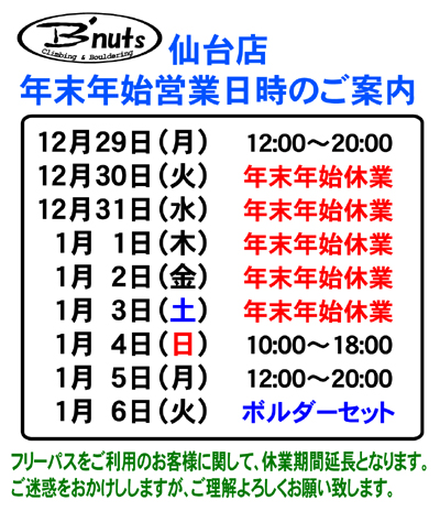 2022.12.03 12月6日(火)ボルダー「マンスリー壁」ルートセットのお知らせ
