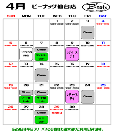 4月カレンダー